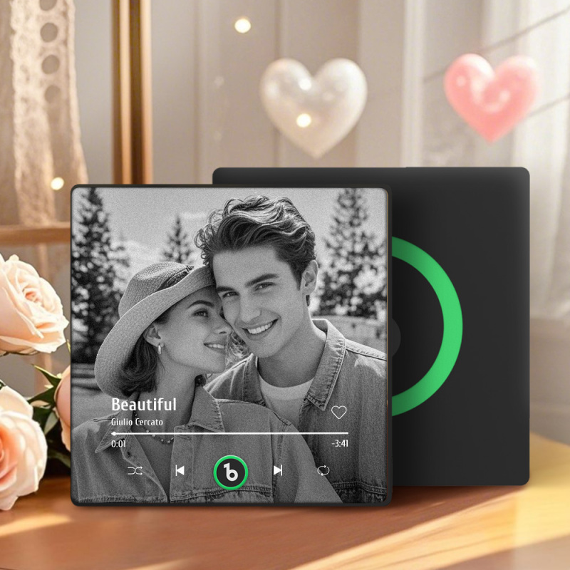 Custom Music Photo Fridge Magnet Personalized Black & White Photo Music Fridge Magnet That Can Play Music Without Cellphone Supports Bluetooth Connectivity Wedding Gift for Her